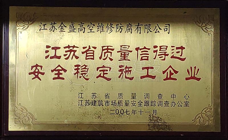 • 2007年江蘇省質量信得過安全穩(wěn)定施工企業(yè)